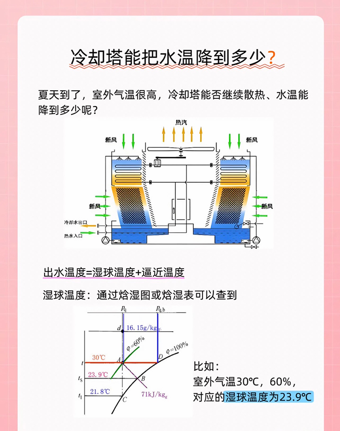 冷却塔核心是通过水与空气的接触,利用蒸发散热+对流换热,将循环水中的热量传递到大气中,实现水的